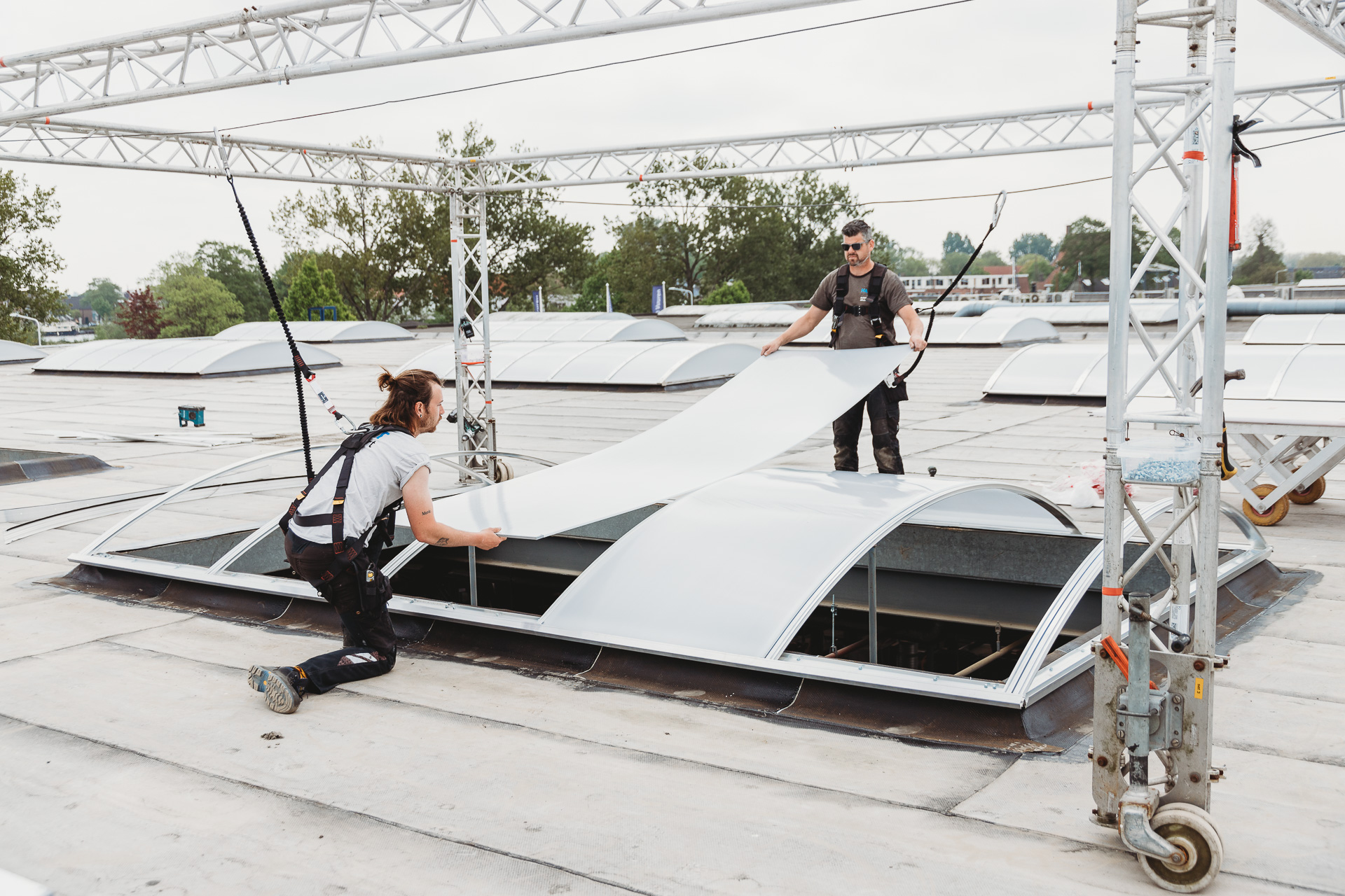 Of het nu gaat om een prefab gebogen lichtstraat die we in één keer kunnen plaatsen, of om een circulair opgebouwd systeem dat we op locatie monteren, we zorgen dat het klopt en past bij jouw gebouw en jouw wensen.